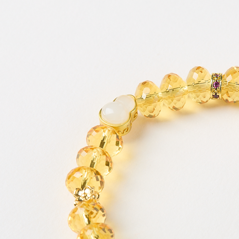 6*8mm Faceted Yellow Citrine: An earth-element gemstone with a warm golden hue that represents wealth and career stability, helping the wearer attract prosperity and strengthen professional success. Gold-Plated Copper Accessories: A metal-element material with a luxurious golden tone that symbolizes success and benefactor support, aiding the wearer in achieving career stability and fostering helpful connections.