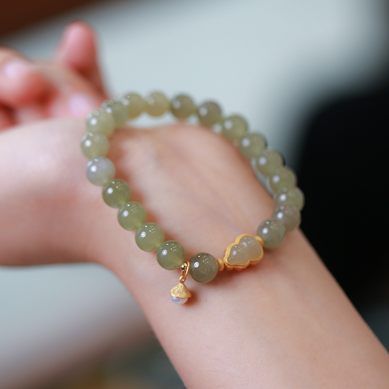 Crafted with premium natural Hetian Jade round beads, paired with a gold-plated silver gourd and pearl inlay, this bracelet symbolizes “Blessings and Prosperity.” It balances and stabilizes five-element energies, perfect for those seeking harmony, wealth, and supportive connections.