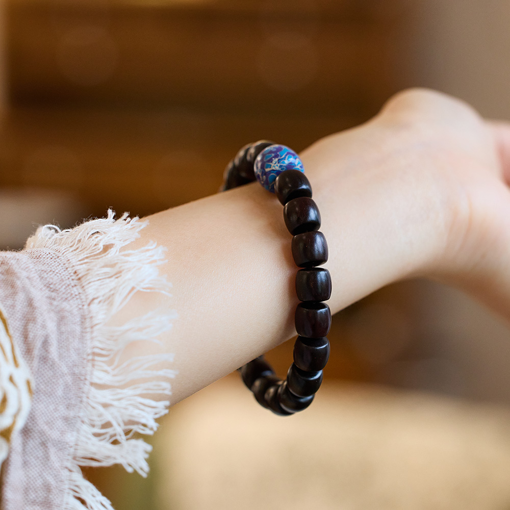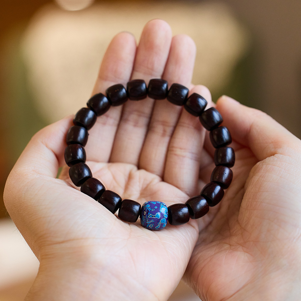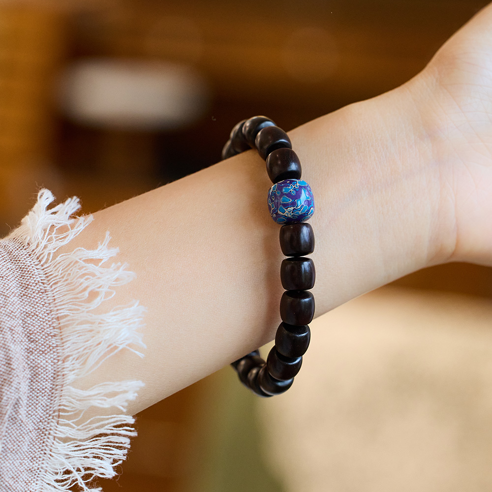 The “Purple Mist at Dawn” bracelet combines straight-cut lacquer beads and sandalwood, blending the energies of wood and fire. It symbolizes wisdom enhancement and career advancement, making it ideal for individuals seeking intellectual growth and career success.