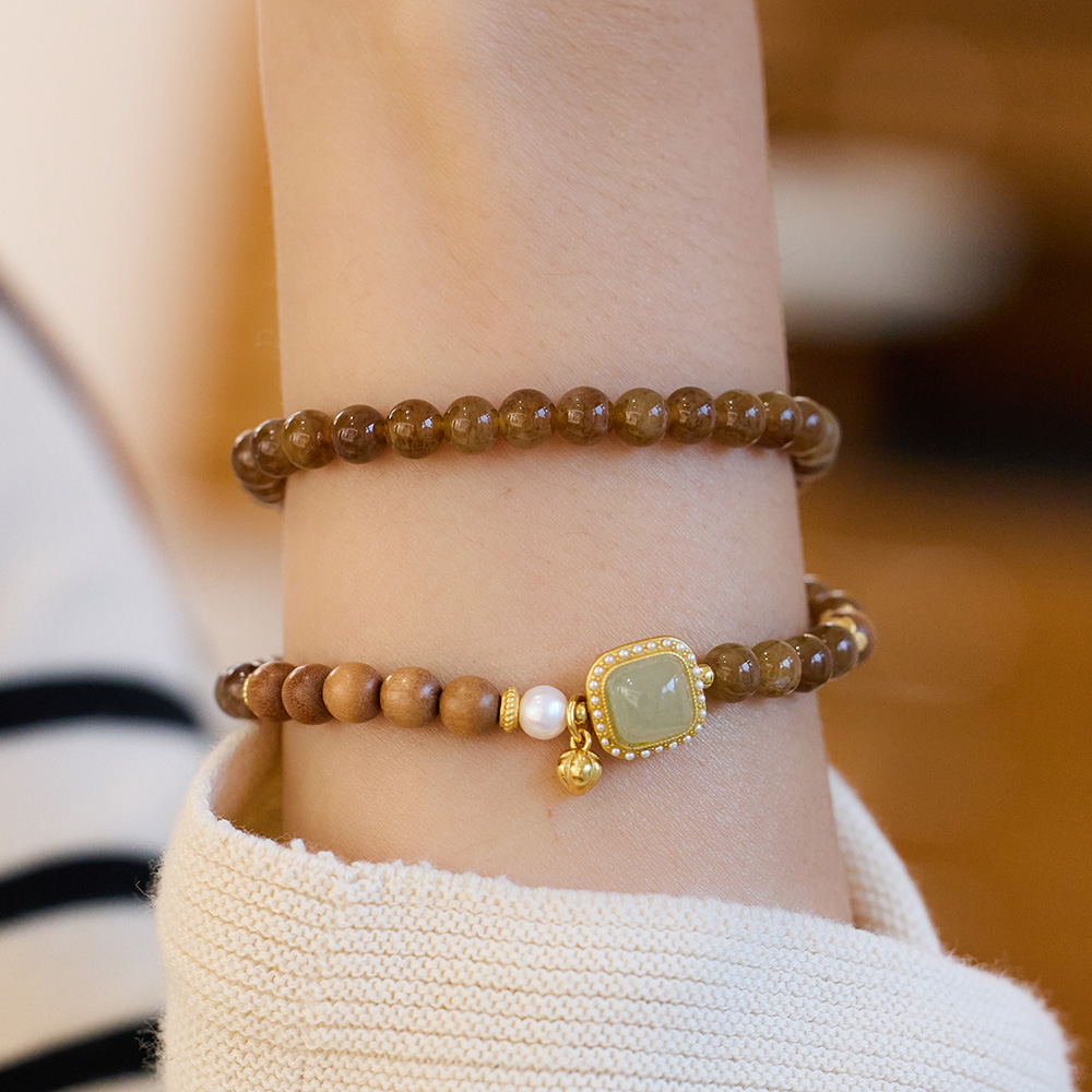 Crafted with natural sugar-color Hetian Jade round beads, paired with a gold-plated silver “Auspicious Persimmon” design and soft pearl, this bracelet symbolizes “Warmth and Prosperity.” It balances five-element energies, ideal for those seeking nourishment and lucky energy.